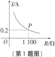 1. 一个亮度可调节的台灯,其灯光亮度的改变,可以通过调节总电阻控制电流的变化来实现. 该台灯的电流 $ I(A) $ 与电阻 $ R(\Omega) $ 的函数关系图象如图所示,该图象经过点 $ P(1100,0.2) $. 根据图象可知,下列说法中正确的是(