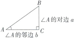 如图,在 $ Rt\triangle ABC $ 中,$ \angle C = 90° $,如果锐角 $ A $ 确定,那么 $ \angle A $ 的对边 $ a $ 与邻边 $ b $ 的比便随之确定,这个比叫做 $ \angle A $ 的