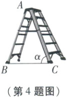 4. 一架人字梯如图所示,已知 $ AB = AC = 2 m $,$ AC $ 与地面 $ BC $ 的夹角为 $ \alpha $,则两梯脚之间的距离 $ BC $ 为(