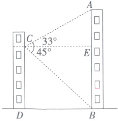 由题意得,CD=36m,∠BCE=45°,∠ACE=33°.在Rt△BCE中,∠BCE=45°,