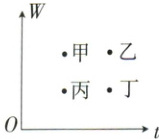 10. 小明对四位同学的做功情况各测量了一次,并将四位同学做的功 W 和所用时间 t 在坐标系中描点,得到了图中甲、乙、丙、丁四个点,这四位同学做功功率最大的是(