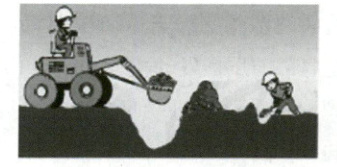 11. 热火朝天的建筑工地上正在进行一场有趣的挖坑比赛。在 1 min 内,挖掘机挖了一个直径 1.2 m 的大坑,工人师傅挖了一个直径 40 cm 的小浅坑,如图所示。关于此次比赛,下列说法正确的是(