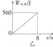 12. 如图甲所示,一木箱重 400 N,工人用沿斜面向上的拉力 F 将木箱匀速拉到高处。已知整个过程中工人做的有用功 $ W_{有用} $ 与木箱运动距离 s 的关系如图乙所示,整个过程的额外功是 240 J,则拉力 F =