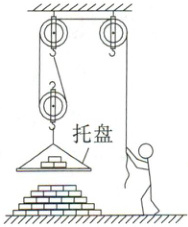 13. 小瑜给在建筑工地工作的爸爸送工具时,看到爸爸用右图所示的装置提升地板砖,已知该装置的托盘重 100 N,容量足够大,某种地板砖每块重 120 N,滑轮的摩擦和绳重忽略不计。质量为 65 kg 的爸爸站在地面上用此装置在 4 s 内将 6 块地板砖匀速提升了 2 m,此装置的机械效率为 80%,g 取 10 N/kg。由此可知,此装置的动滑轮重为
