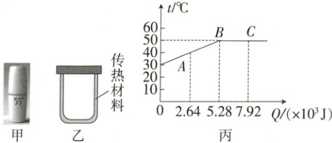 11.(多选)图甲所示为一款新型水杯,将沸水倒入杯中,轻摇几下后,水温便可降至 55 ℃左右,并能保温 3 小时。图乙为其内部结构图,杯壁的不锈钢夹层中有晶体传热材料,其在常温下是固态,会随着温度的变化发生可逆的固液转换。取 0.3 kg 该晶体材料,对其进行加热,其温度与吸收的热量的关系如图丙所示。下列分析正确的是(