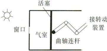 9. 光发动机可用于卫星的能源补充,其原理如图所示,密闭气室中$N_{2}O_{4}$在光照下分解,使气室气压增大,推动活塞右移。活塞右移过程相当于汽油机的(
