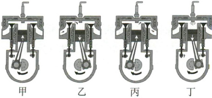 2. 单缸四冲程内燃机完成一个工作循环时,图中四个冲程的顺序是