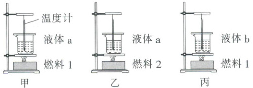 。(4) 小明选用甲、乙两个装置比较不同燃料的热值的过程中,甲烧杯内液体沸腾时下面的燃料还未燃尽,而乙烧杯中液体在燃料燃尽时都未沸腾(两种燃料都充分燃烧),则