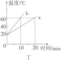 (2) 比较不同物质的比热容,选用图中合适的装置加热相同时间后,绘制出温度 - 时间图像如图丁所示,则液体 a 的比热容