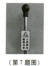 7. 如图所示,这是加油站里常见的静电释放器。司机在提枪加油前,可以用手触摸静电释放器以清除身体上的静电,静电释放器应该用