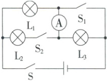 3. 如图所示,当开关S、$S_1、$$S_2$均闭合时,