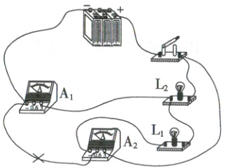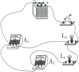 两个灯泡并联,此时电流表测的是通过灯泡L₂