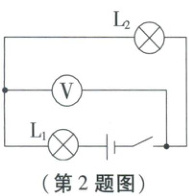 2. 如图所示,若电源电压为 4.5 V,电压表的示数为 3 V,则灯泡$ L_1 $两端的电压为