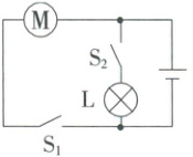 )A.当$ S_1、$$S_2$闭合时,灯 L 与电动机 M 是串联的