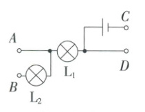 4. 如图,A、B、C、D 是四个接线柱,要使灯$ L_1、$$L_2$串联,应把