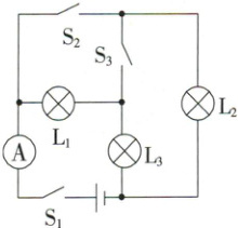 (2)当开关$ S_1、$$S_2、$$S_3$都闭合时,通过灯泡$ L_2$的电流是 1.6 A,电流表 A 的示数是 2.4 A,求此时通过灯泡$ L_1$和$ L_3$的电流。