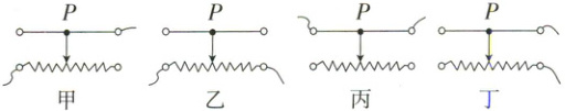 3. 下图是滑动变阻器使用的连接方法。当滑片P都向左移动时,滑动变阻器电阻值改变的情况分别是甲: