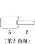5. 如图所示,A、B为材料和长度相同的电阻,A电阻的直径大于B电阻的直径,现将它们按图中所示接入电路,则通过A和B的电流$I_A$