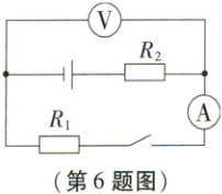 6. 如图所示,$R_2$的阻值为3Ω。闭合开关后,电压表的示数为6V,电流表的示数为1A,则$R_1$=
