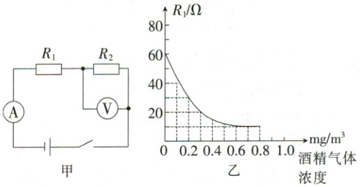 (1)当酒精气体的浓度为0时,电压表的示数为3 V,由图像可知,此时R₁=60 Ω。