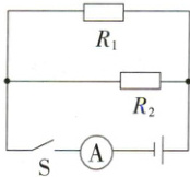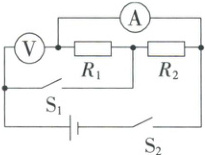 3. 如图所示,电源电压不变,当开关$S_1、$$S_2$同时闭合时,电流表的示数是0.3A,电压表的示数是6V。现将两表互换位置,当开关$S_2$闭合、$S_1$断开时,电流表示数是0.2A,则$R_1$和$R_2$的阻值之比是