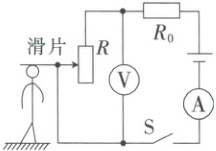 6. 下图是一款测量身高的仪器。当体检者站在台面上时,测量仪能自动显示身高。R₀是定值电阻,R是滑动变阻器,电源电压保持不变,滑片会随身高上下平移。当开关S闭合时,下列说法正确的是(