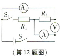 12. 如图所示,电源电压不变,同时闭合开关S、$S_1,$待电路稳定后再断开$S_1,$下列分析正确的是(