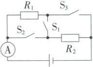 15. 如图所示,电阻$R_1$的阻值为20Ω,电源电压不变。当$S_1、$$S_2$断开$,S_3$闭合时,电流表的示数为0.45A;当$S_1$断开$,S_2、$$S_3$闭合时,电流表的示数为0.75A。求: