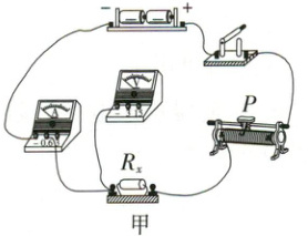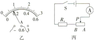 (3)排除故障后,当滑动变阻器的滑片$P$移到某一位置时,电压表示数为$0.8V$,电流表示数如图乙所示,则未知电阻$R_{x}= \Omega$。