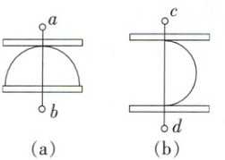 8. 一个半圆形的薄电阻片,当按图(a)所示夹在两导体板之间时,测得电阻值为 R,则当按图(b)所示夹在两导体板之间时,测得的电阻为