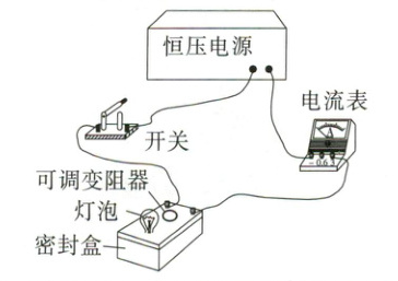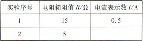 10. 一个密封盒的表面可见两个接线柱、一个灯泡(不考虑温度影响)和一个电阻箱的旋钮。盒内只有灯泡和电阻箱两个用电器,小明想探究它们的连接方式,连接了如图所示的电路(电源电压恒为3V),做了两次实验,部分数据记录如下表所示。
