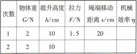 cm。若忽略绳重和摩擦,则第2次实验测得的滑轮组的机械效率应等于