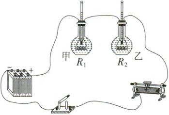 ①实验中将$ R_1 和 R_2 $串联,目的是控制一定时间内通过两电阻的
