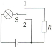 10. 下图是某课外活动小组设计的小台灯的电路图。S为单刀双掷开关,电源电压为12 V且保持不变,小灯泡的额定功率是6 W,灯丝电阻不变,电阻R的阻值为6 Ω,当开关S接“2”时,小灯泡恰好正常发光。