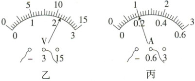 (4)闭合开关,调节滑动变阻器的滑片 $ P $,使灯泡正常发光,此时电流表示数如图丙所示,则待测灯泡的额定功率为______W。