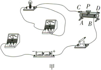 (3)排除故障后闭合开关,当滑动变阻器的滑片 $ P $ 移到某一位置时,电压表示数如图乙所示,要测量小灯泡的额定功率,应将滑动变阻器的滑片 $ P $ 向______(填“A”或“B”)端移动。