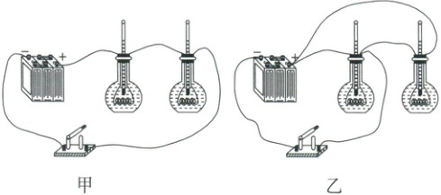 10. 某物理学习小组在“探究电流相同时通电导体产生热量的多少跟电阻的关系”实验中,可供选用的器材有:6 V 电源、5 Ω 的发热电阻两只、10 Ω 的发热电阻两只、量程适合的温度计两支、规格相同的烧瓶两只,水、酒精、煤油、开关、导线若干。