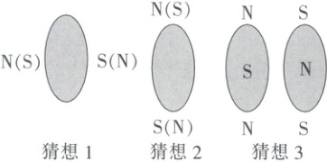 14. 某兴趣小组发现一种椭球形磁铁,他们想知道该磁体的磁极分布情况,于是提出了以下三种猜想: