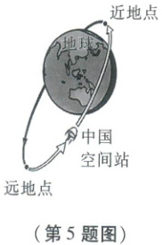 5. 如图所示,空间站从远地点到近地点的过程中,其运动速度