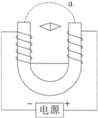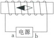 9. 在图中,标出通电螺线管附近静止的小磁针的N极和通电螺线管的磁感线a的方向。