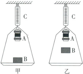 11. 如图甲所示,电磁铁A、铁片B和支架组成的装置悬挂于弹簧测力计C的下端。当电磁铁A通电后,铁片B被突然吸引到如图乙所示的位置时,弹簧测力计C的示数将(