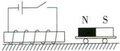 6. 如图所示,光滑地面上有一小车,其上放一条形磁体,左侧地面固定一螺线管,当开关闭合时,小车将向