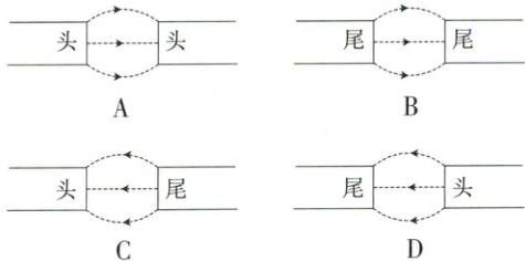 1. 下图是军事著作《武经总要》中记载的“指南鱼”,它静止漂浮时,鱼头总是指北。小明将两条完全相同的“指南鱼”靠近摆放,并绘制了它们的磁感线分布,其中正确的是(