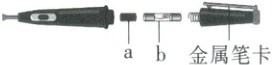 线接触造成的。下图是测电笔的结构,图中a为电阻、b为氖管,笔中的电阻与氖管的连接方式是串联