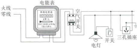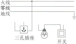 8. 下图是家庭电路中的三孔插座和有开关控制的电灯,请将其正确的连接画在电路中。