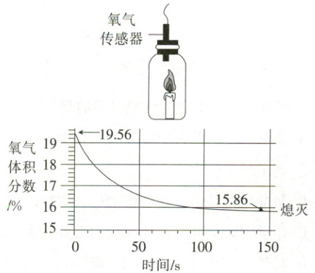 8. 乙同学使用氧气传感器测量密闭装置内蜡烛(足量)从燃烧到熄灭的过程中氧气含量的变化,实验结果如下图所示。下列判断或结论正确的是(