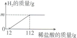 12. 将一块已生锈的铁片放入质量分数为$7.3\%$的稀盐酸中充分反应,测得生成$H_{2}$的质量与稀盐酸的质量关系如下图所示(假设铁片中除有$Fe_{2}O_{3}$外不含其他杂质)。下列说法正确的是(
