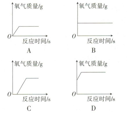 8. 下图是实验室用过氧化氢溶液与二氧化锰混合制取氧气时,生成氧气的质量随时间变化的关系图,其中正确的是(