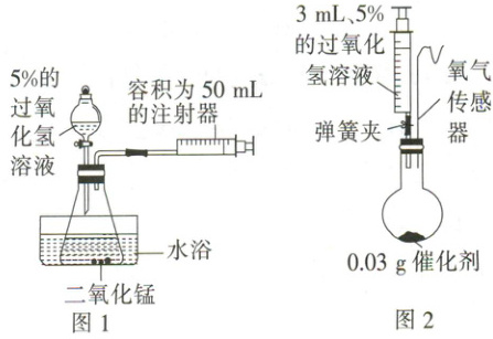 (1) 小金为了探究温度对过氧化氢分解反应速率的影响,借助如图1所示实验装置(夹持装置略去),进行了两次实验。两次实验的部分设计如下表所示,实验2中应加入5%的过氧化氢溶液