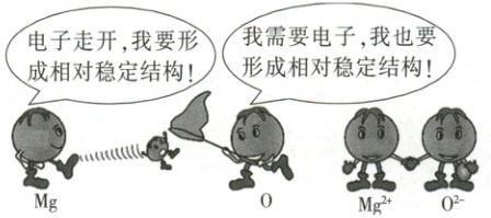 电的氧离子,带相反电荷的两种离子相互作用形成氧化镁。由此可见,离子